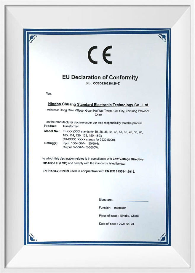 Ningbo chuangbiao electronic technology est professional fabrica omnium electronic Transformers. In comitatu fuit condita in MMX.